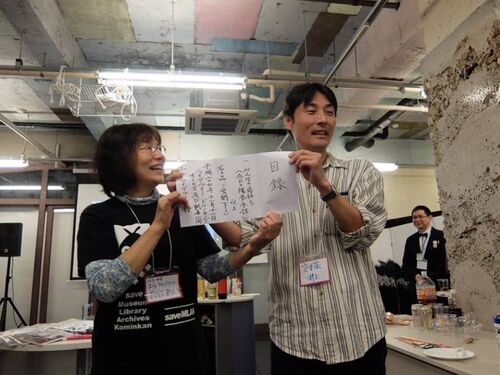 11月11日に横浜で開かれた「飲み女ライブラリアンの会」発足パーティで集められたカンパ47,541円を、空手家図書館員こと井上昌彦さんが11月26日に持ってきてくださいました。 「飲み女ライブラリアンの会」(Library Drinking girls)は、そもそも当館館長谷…